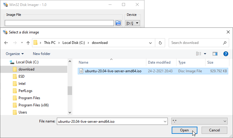 The software we use to create the bootable USB stick is Win32DiskImager. You can download an installer and install the software on your PC, but that is not really necessary. You can also download the so-called binary release. This is a ZIP file that you can extract and use the software without having to install it. You can download the binary release from: