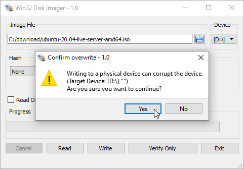 If you cannot find the ISO file to select it, you have to use the drop-down box at the bottom right of the selection screen. Select *.* (see first screenshot below) - Select the ISO file you downloaded earlier, select the USB stick as the target device and click “Write”. A warning will appear like the middle image below. Click Yes to continue.