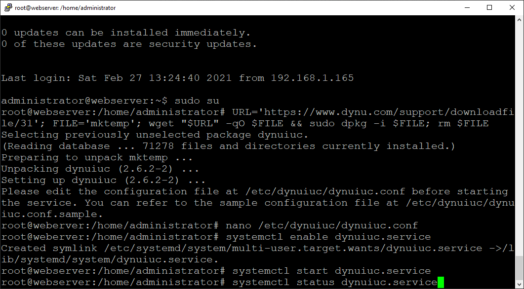 systemctl enable dynuiuc.service - We starten nu de service met het commando: