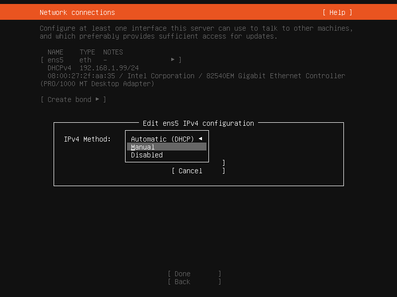 - Selecteer ens5 en geef Enter. (Afhankelijk van de hardware kan er een andere naam staan)