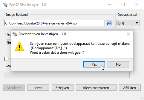 - Als het schrijven gelukt is kan het programma worden gesloten en de USB stick veilig worden verwijderd.