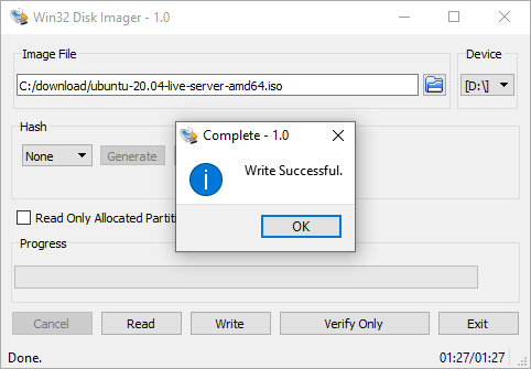 - When the writing is successful, the program can be closed and the USB stick can be safely removed.