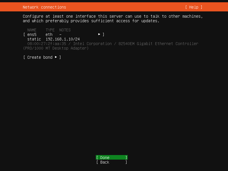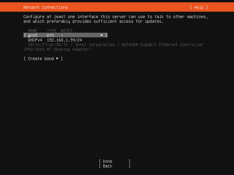 - Selecteer ens5 en geef Enter. (Afhankelijk van de hardware kan er een andere naam staan)
